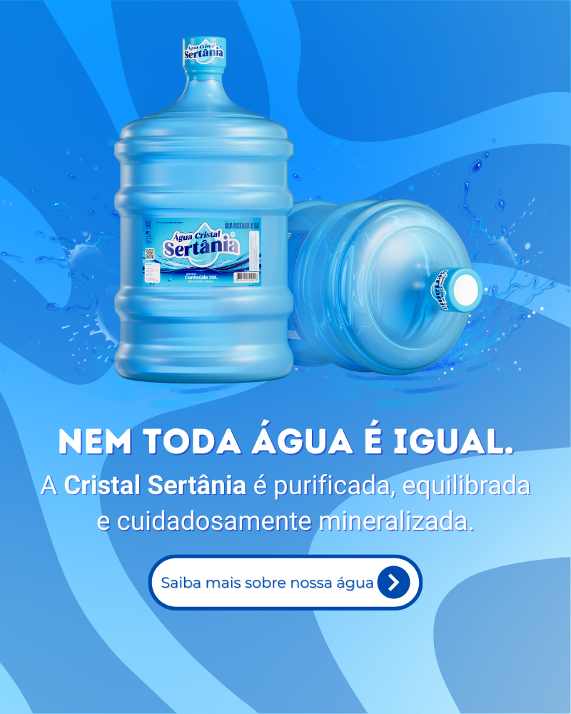 Assim, a Cristal Sertânia leva até você a leveza e a qualidade de uma água nascida no sertão, mas tratada com tecnologia de ponta.
